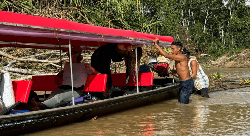 Entramos eu e a Lauren, norte-americana que vive na Costa Rica, no barco 60+, considerado um luxo pelo espaço generoso, onde poderíamos ir deitadas em colchonetes. Já havíamos percorrido duas horas de rio quando o motor do nosso barco quebrou. Sem chances. Quebrou mesmo. Tinha que ser substituído.