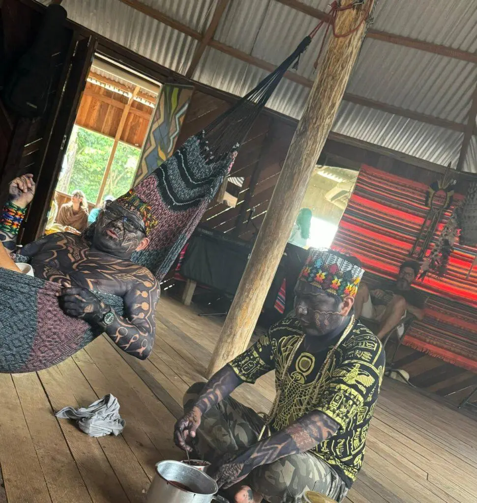 Hoje eles sobrevivem levando seu canto, rituais e cerimônias para todo o mundo, de Portugal à Turquia, da Suécia a Los Angeles e também para muitas capitais do país. Por mais que tenham “conforto” e entrem em contato com as chamadas “mordomias” dos homens brancos nessas ocasiões, eles encaram muitas horas de ônibus em estradas esburacadas e mais ainda em barcos precários para voltar às suas comunidades no interior da floresta. O orgulho de pertencer aos povos originários é perceptível nessas comunidades, que olham para nós com olhos de pena quando dizemos adeus, pela ansiedade que exalamos, pelas nossas queixas de insônia, pela vida que voltaremos a ter longe deles.